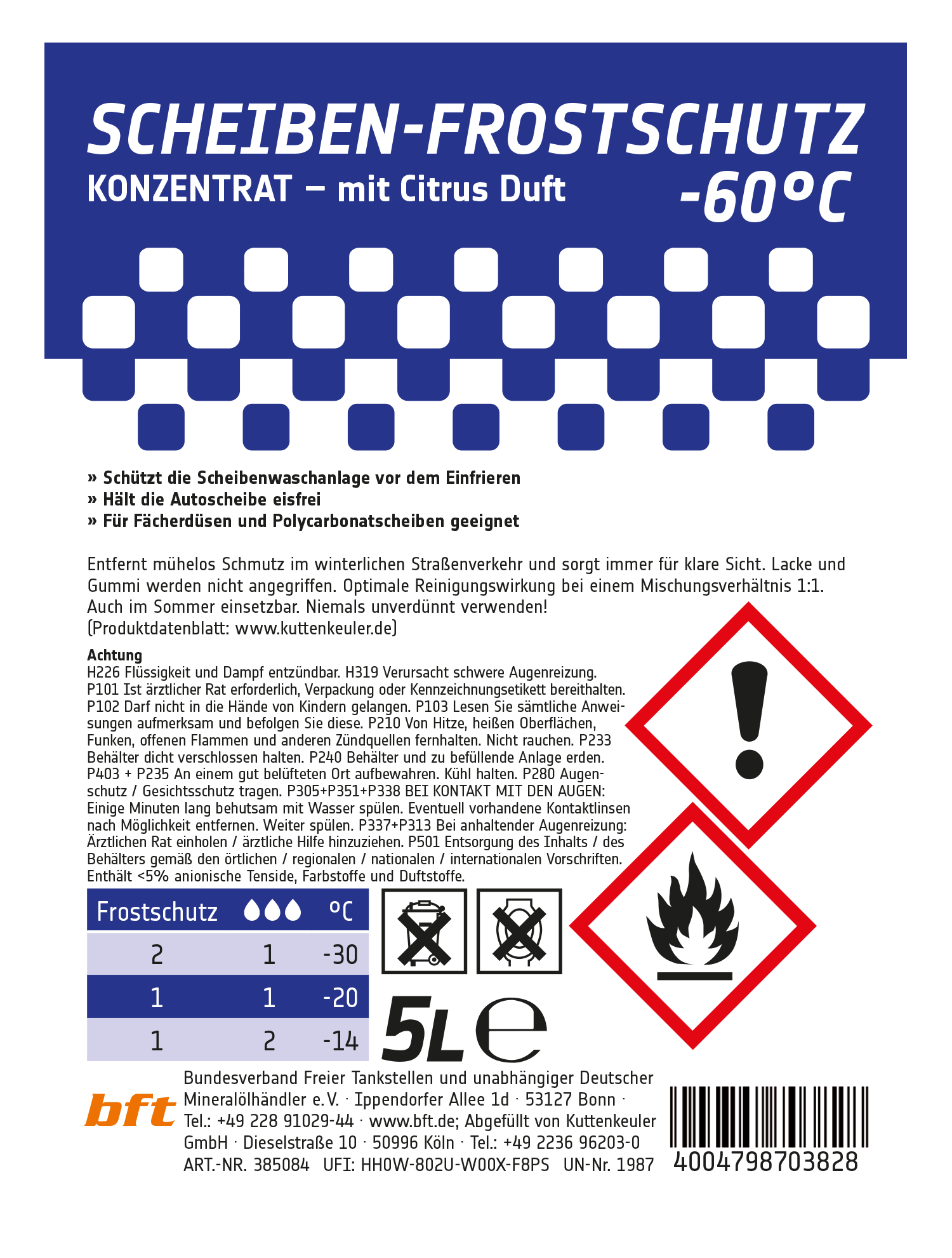 Antifreeze Windscreen Cleaner ‑60°C concentrate can also be used in summer. One part to 5 ‑ 10 parts water is sufficient to achieve a wetting effect and streak‑free cleaning of the windscreen.